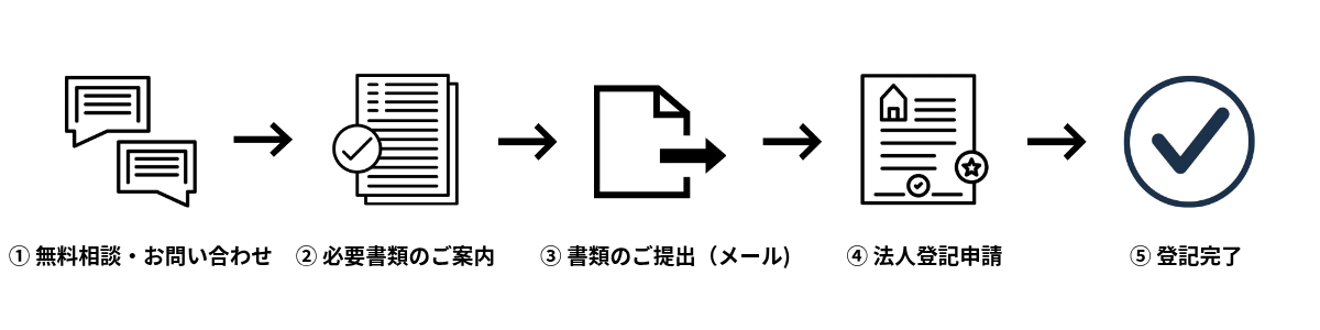 ご相談から最終的な登記完了まで、お客様の利便性のために すべての過程をリモートで代行し、スムーズな手続きをサポートします。